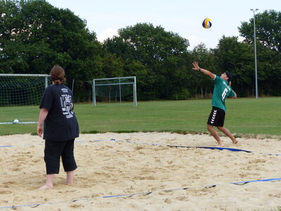 In den Sommermonaten verlegen wir das Spiel gerne nach draußen, da der TSV über ein super gepflegtes und top modernes Multifunktions-Beachfeld verfügt. Auf diesem können nicht nur zwei Beachvolleyball-Spiele gleichzeitig bestritten, sondern bei Bedarf auch die Pfosten entfernt und auf einer Fläche von 30x20 Metern Beachhandball oder Beachsoccer gespielt werden.